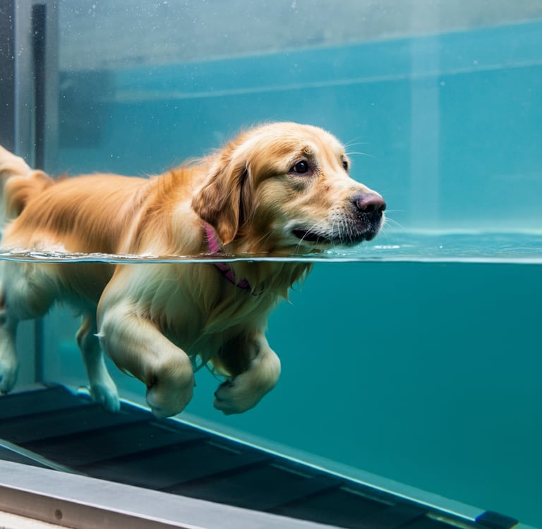 Caminadoras subacuáticas para rehabilitación y fortalecimiento de perros y gatos.