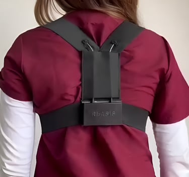 Dispositivo discreto que mejora la postura mediante sensores inteligentes y sistemas de vibración que se activan al detectar una postura incorrecta, fomentando hábitos posturales saludables .